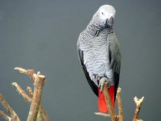 Depuis hier soir, nous avons un nouveau pensionnaire (he oui, un de plus...) : un perroquet, un gris du Gabon. C'était le rêve de ma puce, il s'est enfin réalisé...